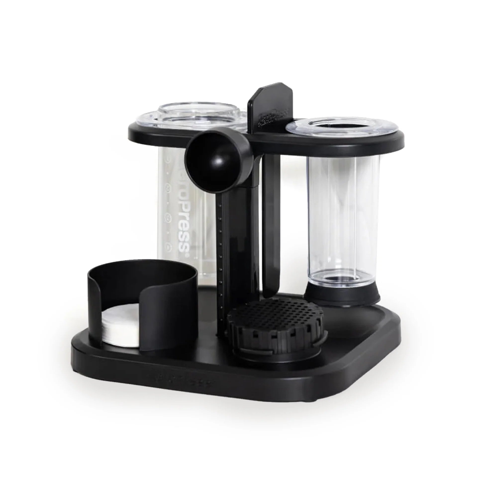 The AeroPress Organizer Stand is a compact, sleek storage solution with compartments for your coffee press, stirrer, filter cap, and paper filters, which makes it ideal for keeping home and office countertops and cabinets neat.