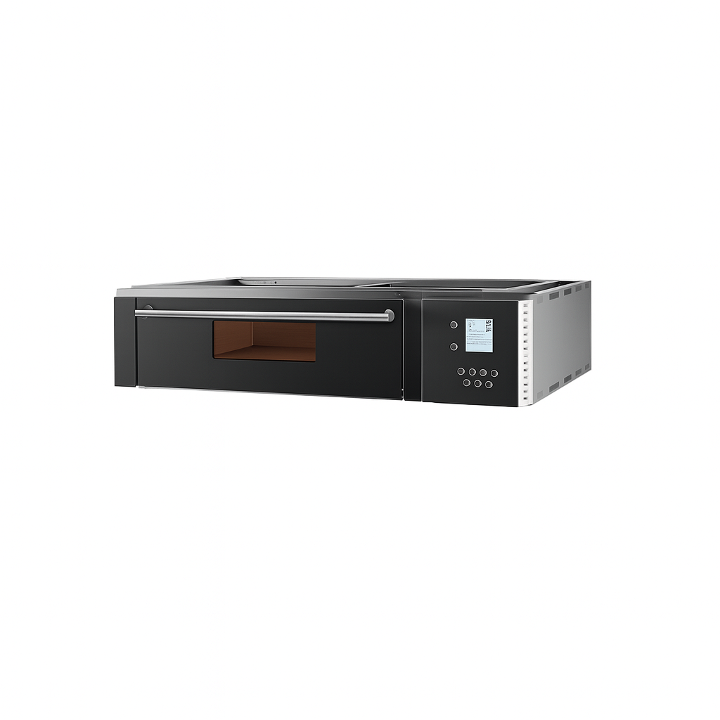 - Capacity 4 pizzas Ø 30cm Mouth height of 20 cm with Stone sole. - Programmable Control Panel with capacity to store 100 programs. - Ceramic heating elements for a uniform baking result. - Power Master Control System. - Permits distribution of the contracted power between the different modules that comprise the oven. - Baking Consumption (225ºC, 17 min) 0,92 Kwh Power 6,2 kW