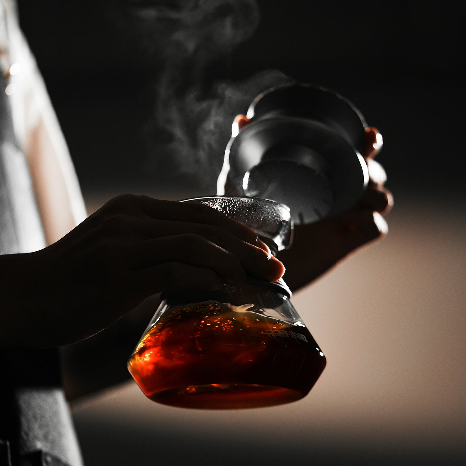 The Aroma Coffee Server, inspired by 2019 World Brewers Champion Jianing Du, is designed to preserve coffee’s fleeting aromas and elevate the pour-over experience. Guided by fluid dynamics and refined through countless adjustments, its unique diffuser lid, curved body, and narrowed neck work together to minimize aroma loss, enhance flavor integration, and create a multi-sensory brewing ritual. Every detail from the glass flow lines to the versatile dripper compatibility exists for one purpose: to unlock and preserve coffee‘s full flavor.
